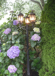 The front lawn area features a large fountain, and is perfectly flat. This area is surrounded by trees and plants, and is accessed either from the house or the front driveway.