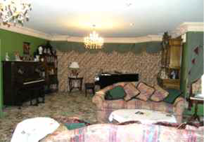 The lounge area (downstairs) has a large open fireplace and is furnished in period style. A charming area for drinks, snacks, relaxing or listening to the piano, or your favourite music on the vintage radiogram.