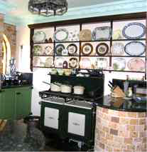 The kitchen has a large fuel stove and an early model gas stove, along with period furniture and fittings. Seating for six people is provided in the kitchen area where you can look out over grassy hills and gardens.